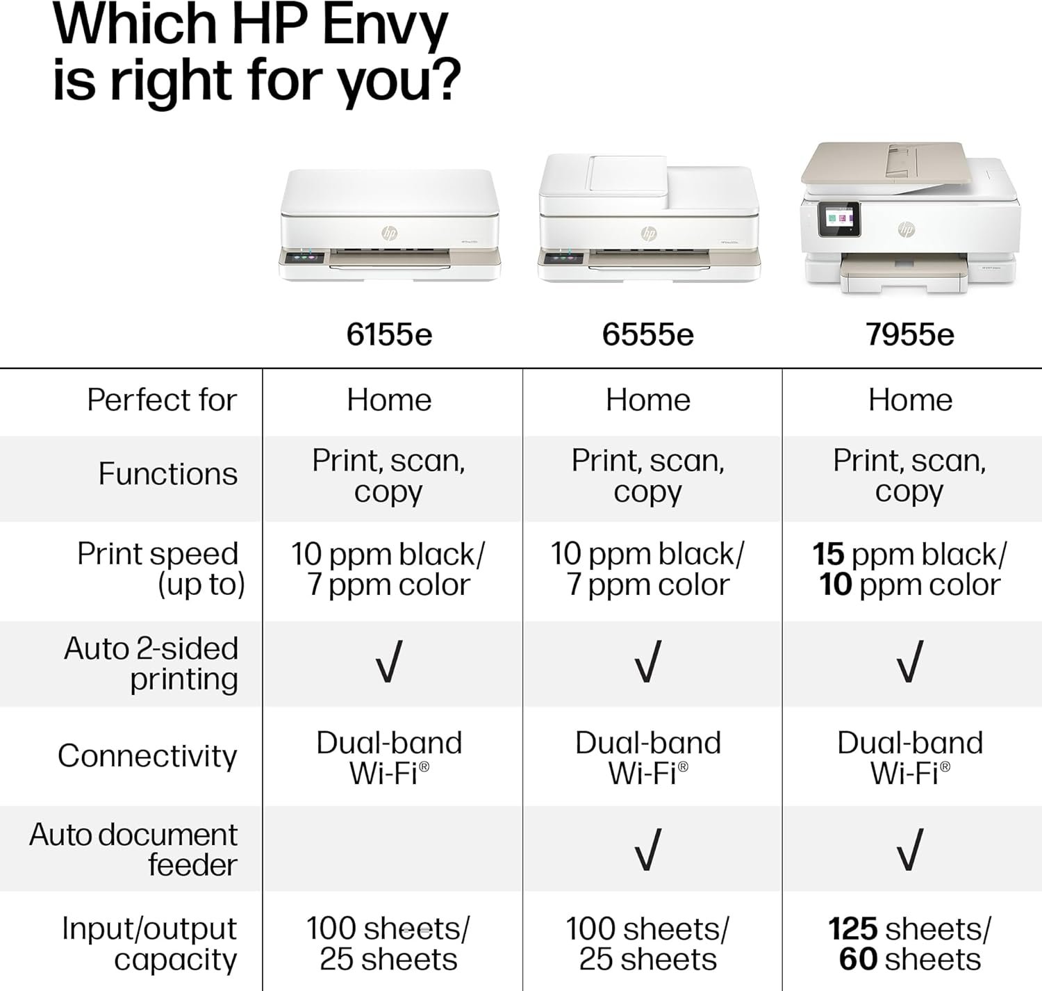 • FROM AMERICA’S MOST TRUSTED PRINTER BRAND – The Envy 6555e is perfect for homes printing everyday high-quality color documents like homework and borderless photos. Print speeds up to 7 ppm color, 10 ppm black.